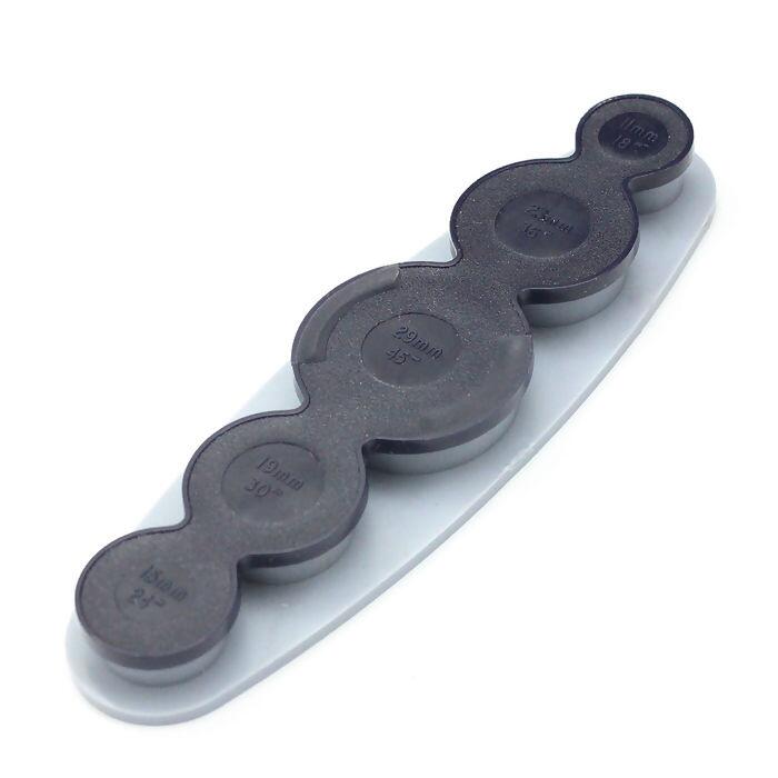 Kit para encapar botão tipo bombê manualmente, o kit contém espaço para fazer botões de 11mm, 15mm, 19mm, 23mm e 29mm.
