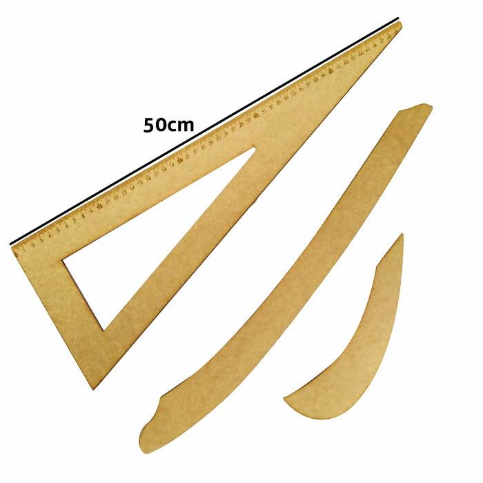 Kit Régua Esquadro para Modelagem 3 Peças MDF- LV-1198-MDF