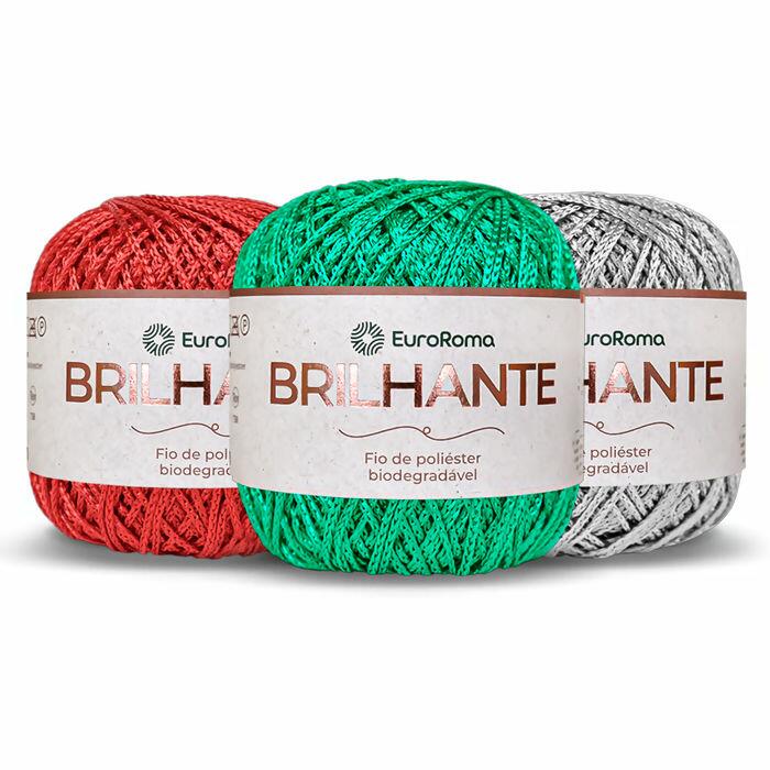 Linha Brilhante Euroroma. Feito de 100% poliéster biodegradável, ele se decompõe em até 4 anos após o descarte, reduzindo impactos ambientais quando comparado a fios sintéticos tradicionais. Com brilho acetinado e cores vibrantes, é ideal para crochê, tricô ou bordados, proporcionando um acabamento sofisticado e duradouro em peças de moda, decoração e acessório. Com 136m e aproximandamente 100g. TEX 738