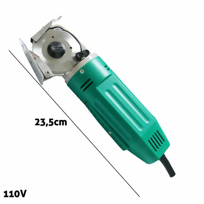 Máquina bananinha de 110V para cortar tecidos, possuindo um disco sextavado de 2" (cerca de 5cm), essa máquina é ideal para substituir a tesoura em cortes de amostras e peças, dando um corte mais limpo e mais rápido. Indicado para materiais como malha, algodão, lã, seda, fibra sintética e papel.