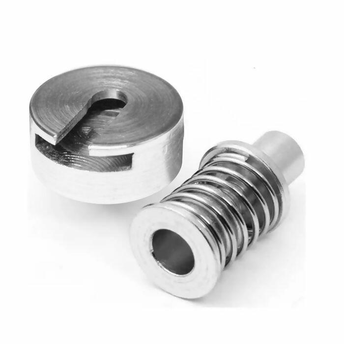 Matriz universal para botão Flexível sem Furo, indicado para os tamanhos 17 e 20 de botões flex lisos e com pedra. O pacote contém 1 jogo de matriz, requer prensa ou balancim para utilizar.