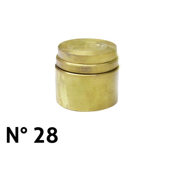 Produzida totalmente em latão Ideal para forrar botões bombê com segurança e encaixe perfeito A matriz deve ter o mesmo número do botão (Ex: Botão N°20 = Matriz N°20)