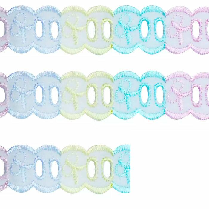 Passa Fita em rolo CTL-102 com cor mesclada branco e multicolorido, cada pacote contém aproximadamente 13,7m de passa fita com largura de 2,5cm. Indicado para Artesanatos, Decoração de Roupas, Trabalhos em Patchwork, Costura Criativa, Pano de Copa e Toalhas.