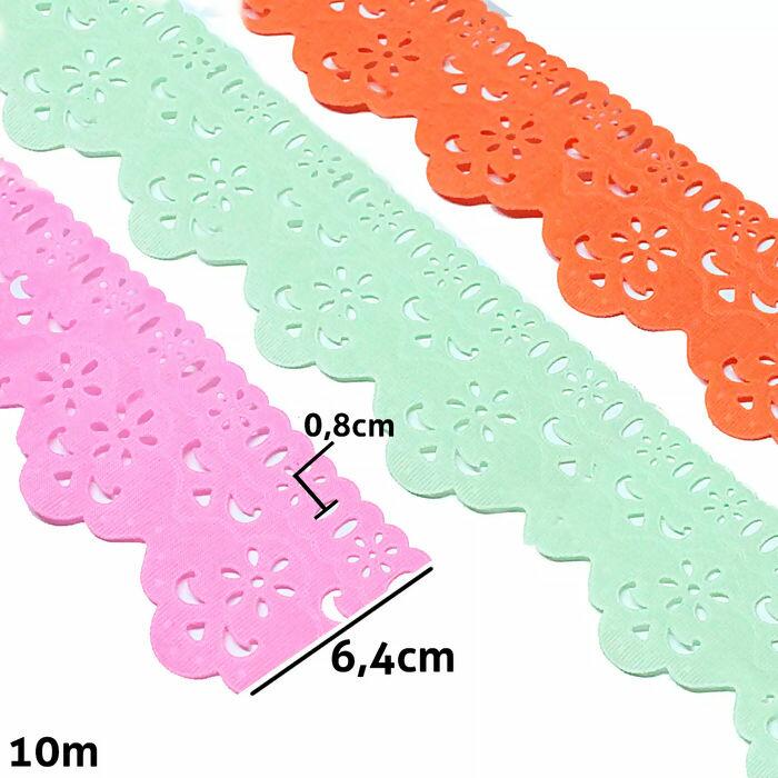 Passa Fita em rolo Mod.07 com Bordado marca Marilda, cada pacote contém aproximadamente 10m de passa fita com largura de 6,4cm. Indicado para Artesanatos, Decoração de Roupas, Trabalhos em Patchwork, Costura Criativa, Pano de Copa e Toalhas.
