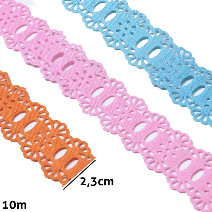 Passa Fita em rolo Mod.34 marca Marilda, cada pacote contém aproximadamente 10m de passa fita com largura de 2,3cm. Indicado para Artesanatos, Decoração de Roupas, Trabalhos em Patchwork, Costura Criativa, Pano de Copa e Toalhas.