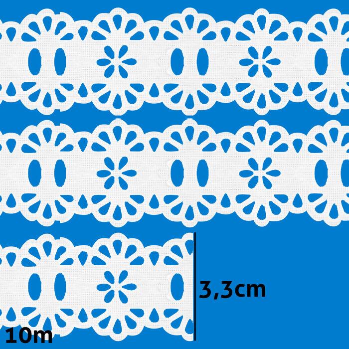 Dados Técnicos Passa Fita Marilda 63 Crochê Big 216 Branco 3,3cm 10m - 004869