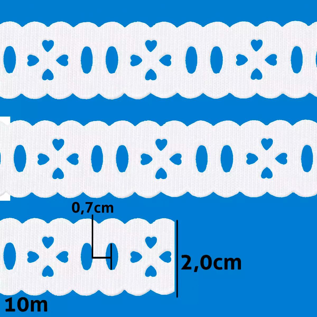 Passa Fita na cor Branca Contém 2 cm de largura Furo possui 0,7 cm Possui 10m de comprimento Ideal para artesanato, decoração, patchwork, pano e toalhas