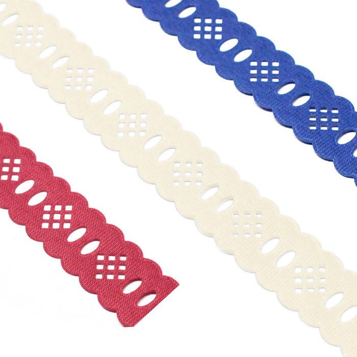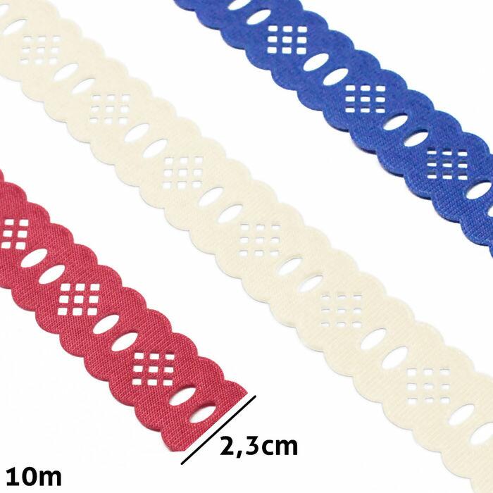 Passa Fita em rolo Mod.84 marca Marilda, cada pacote contém aproximadamente 10m de passa fita com largura de 2,3cm. Indicado para Artesanatos, Decoração de Roupas, Trabalhos em Patchwork, Costura Criativa, Pano de Copa e Toalhas.