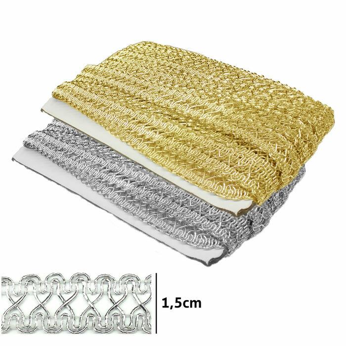 Disponível nas cores Ouro e Prata Largura de 1,5cm Comprimento de 20 Metros Serve como acessório decorativo Ideal para um detalhe sofisticado e festivo em suas criações