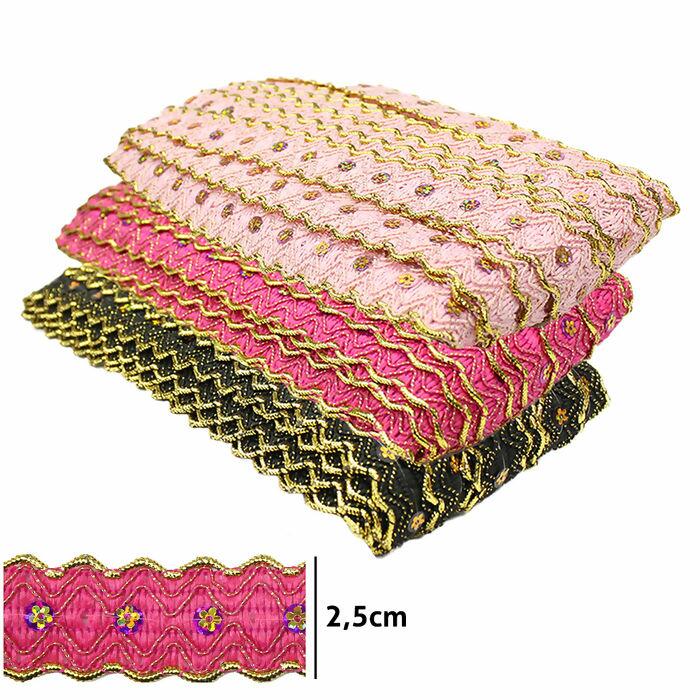 Disponível nas cores Rosa/Ouro, Preto/Ouro, Pink/Ouro e Verde/Ouro Largura de 2,5cm Comprimento de 20 Metros Serve como acessório decorativo Ideal para um detalhe sofisticado e festivo em suas criações