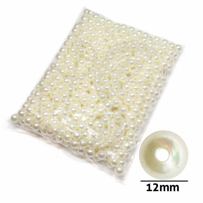 Pacote de pérolas com furo ABS de 12mm da cor Creme, cada pacote contém cerca de 500g. às pérolas ABS são ideais para customização e confecção de bijuterias como colares e pulseiras, chinelos, bordar, roupas e artesanato em geral. Cada pérola possui um furo que vai de uma ponta a outra dela.