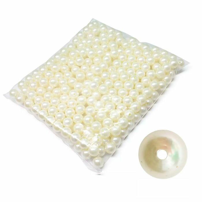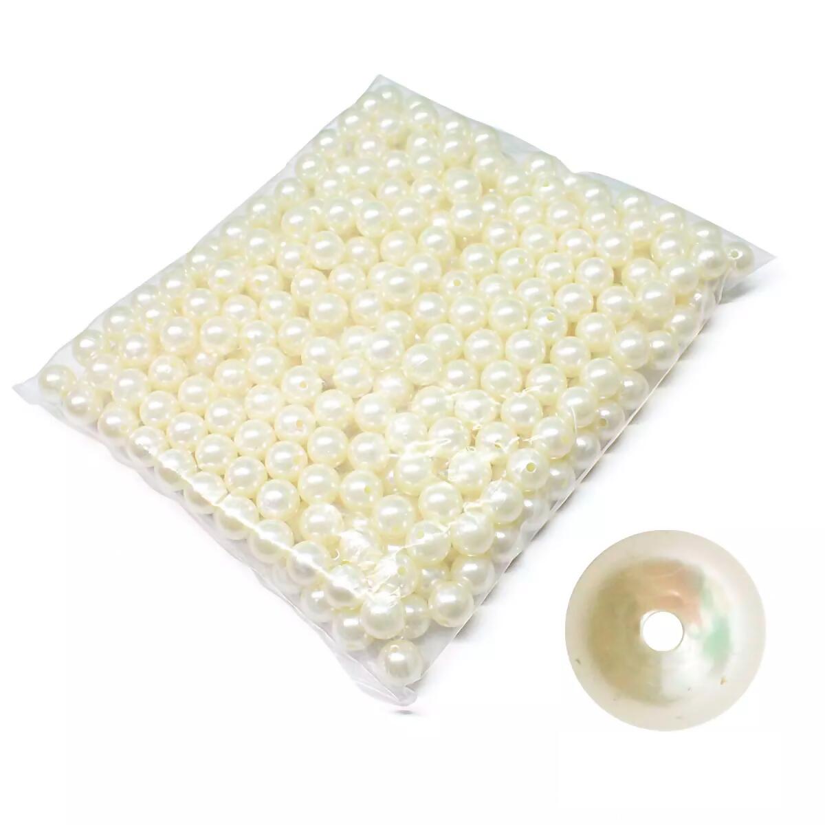 Pacote de pérolas com furo ABS de 14mm da cor Creme marfim, cada pacote contém cerca de 500g. As pérolas ABS são ideais para customização e confecção de bijuterias como colares e pulseiras, chinelos, bordar, roupas e artesanato em geral. Cada pérola possui um furo, de 3mm de diâmetro, que vai de uma ponta a outra dela.