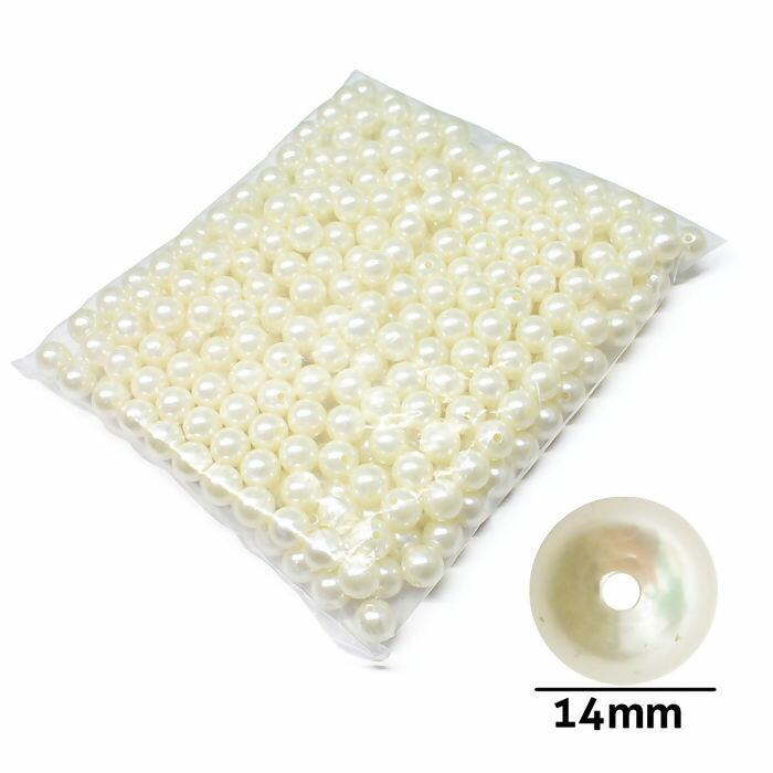 Pérola ABS com Furo 14mm 296 Creme Marfim 500g - 016987