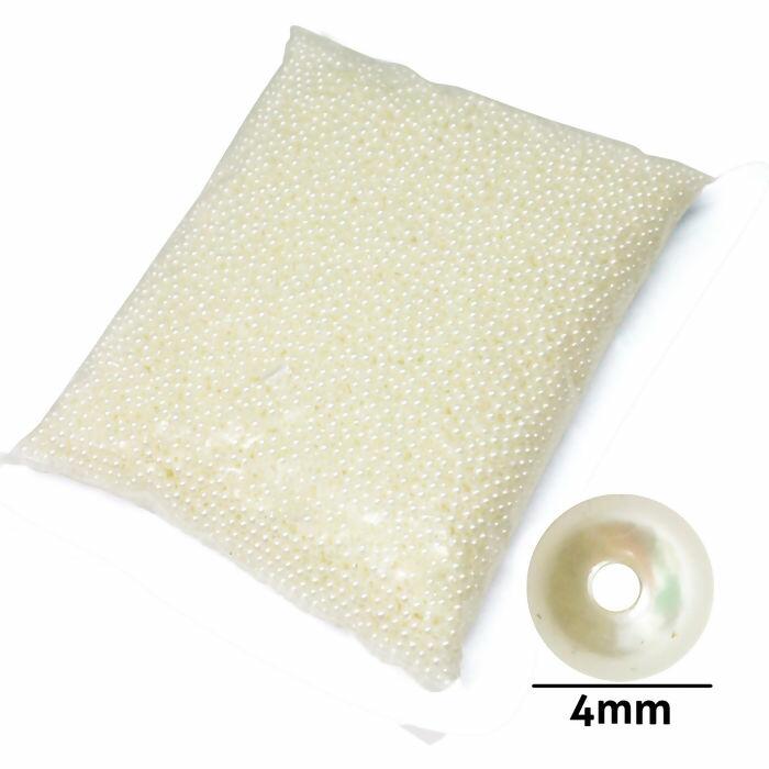 Pacote de pérolas com furo ABS de 4mm da cor Creme, cada pacote contém cerca de 500g. às pérolas ABS são ideais para customização e confecção de bijuterias como colares e pulseiras, chinelos, bordar, roupas e artesanato em geral. Cada pérola possui um furo que vai de uma ponta a outra dela.