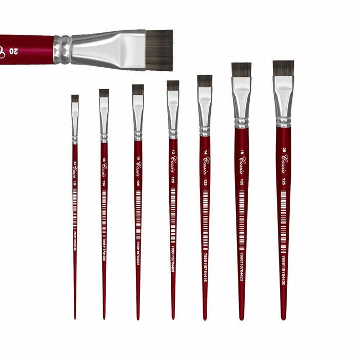 O Pincel 121 é composto por cabo longo de madeira, Virola de Metal, Filamento Pelo de orelha de boi Macio, em Formato Chato Curto. Seu filamento de pelo de orelha de boi é extremamente macio, portanto, não deixa marcas de pinceladas em seu projeto. É um pincel ideal para esticar tinta em superfícies lisas. O Formato chato curto facilita a penetração da tinta nas cerdas, dando uma carga extra de tinta ao seu projeto, se comparado ao pincel chato longo. Seu cabo é longo, não necessitando de extrema precisão em seu traço. O pincel chato artístico é indicado para esticar tinta em superfícies planas como mdf e madeira, pintura com aquarela e contorno de pintura. É indicado para Madeira, Tecido, EVA, Gesso, Biscuit, Tela e Papel para Aquarela.
