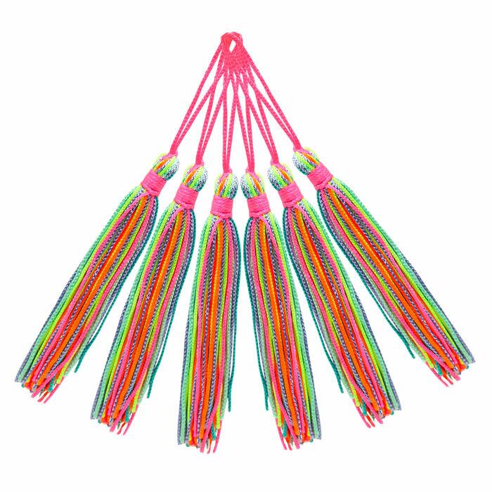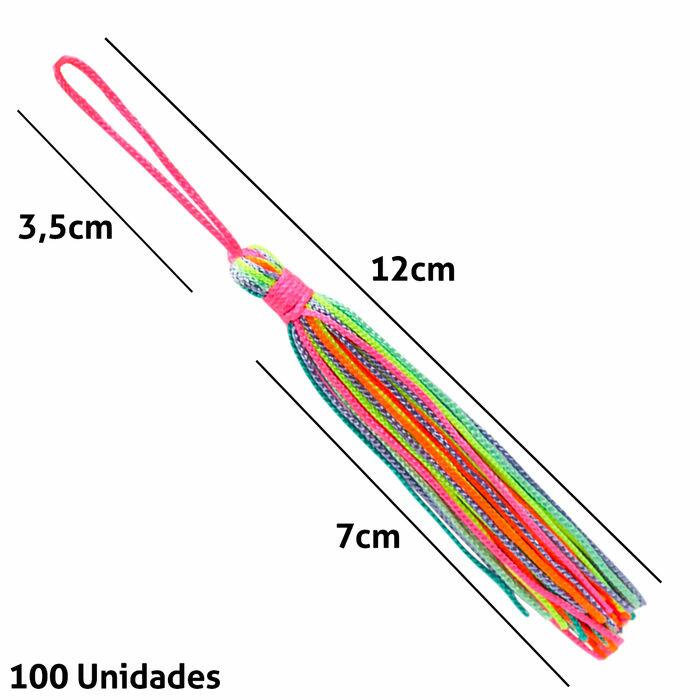Pingente Franja Multicolorido Claro, Pacote com 100 Unidades. ideal para quem busca versatilidade em seus projetos, se destaca pela alta qualidade e durabilidade. Perfeito para joalheria, acessórios de moda e decoração de interiores, ele eleva a estética de qualquer criação. Feito 100% de Poliéster com um tamanho de 7cm