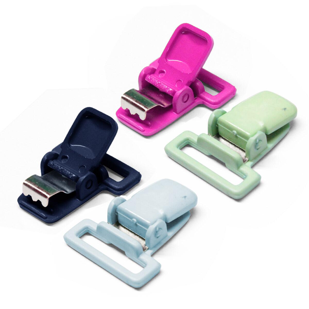 Prendedor de plástico para suspensórios e chupetas, pacote contendo 10 prendedores. Essa presilha para suspensório é ideal para roupas e acessórios de bebês, permitindo o uso de fitas de atém 25mm de largura!