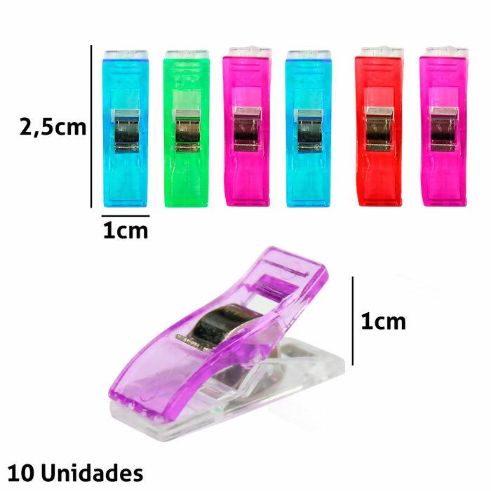 Pregador Pequeno para Patchwork Colorido Cristalino, pacote com 10 Unidades. utilizado em patchwork, costura e artesanato em geral. Feito de plástico com um tamanho de 2,5cm