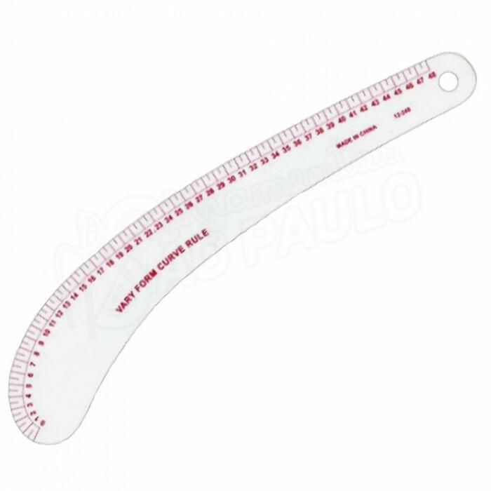 Régua curva para costura com graduação de 48cm, marcada em centímetros e meio-centímetros, ideal para trabalhos de modelagem e confecção. Projetada especialmente para desenhar, ajustar e unir curvas com precisão, facilita a criação de moldes, golas, cavas, barras e outros detalhes em roupas sem a necessidade de cálculos complexos. Feita de plástico flexível e transparente, é uma ferramenta prática, durável e muito utilizada por costureiras, estilistas e artesãos.