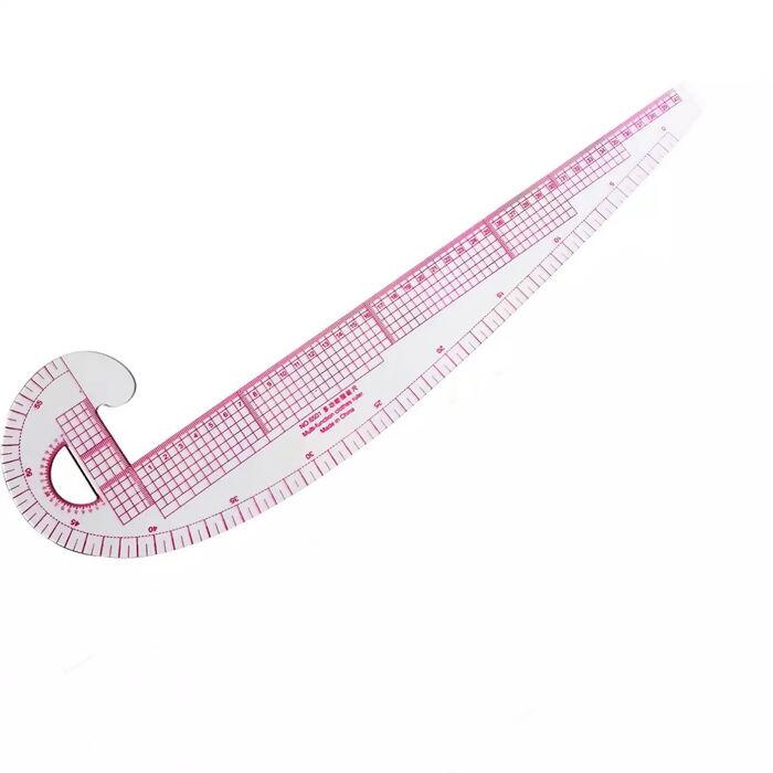 Régua curva para costura com uma curva com graduação de 58cm (centímetros os e meio-centímetros) e um para cálculo de grau, ideal para desenhar e ligar curvas, de maneira que elas fiquem encaixadas sem precisar fazer cálculos. Feita de plástico flexível.