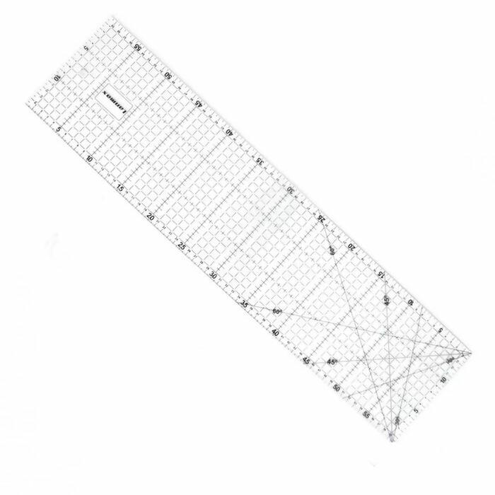 Régua para patchwork quadrada com 15 cm de largura e 60 cm de comprimento, ideal para trabalhos em costura criativa que precisam de cortes longos e retos. Esta régua facilita o posicionamento e a medição exata dos tecidos. Conta com marcações de ângulos notáveis (30º, 45º e 60º), o que a torna perfeita para cortes diagonais e formas geométricas variadas. Produzida em acrílico resistente e durável, é uma ferramenta essencial para artesãos que buscam qualidade e praticidade. Essa régua é excelente para a confecção de patchwork, proporcionando cortes sempre retos e precisos