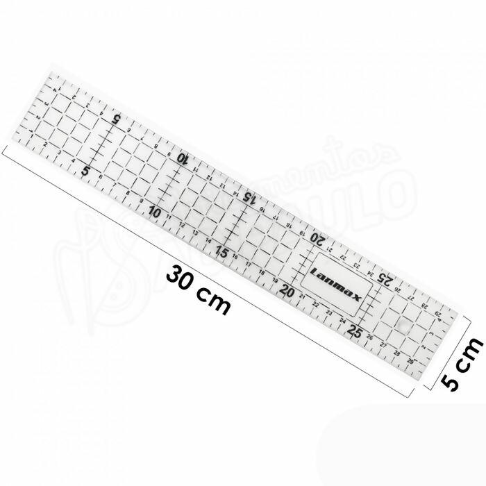 Feita em acrílico durável e transparente, facilita a visualização do tecido. Perfeita para criar cortes grandes precisos Marcações em centímetro e meio-centímetro Régua com 5cmx30cm