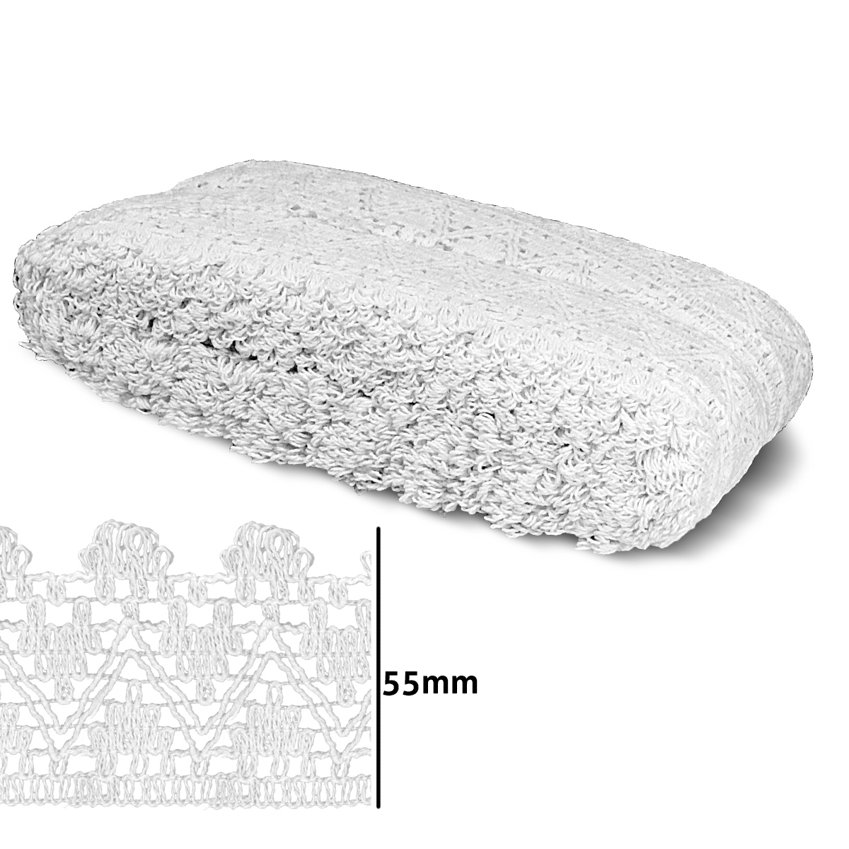 Renda de Algodão 6170/P marca São José 1 Branco, cada pacote contém cerca de 20 metros de renda com largura 55mm. A Renda São José 6170/P sendo feita de algodão com poliamida é perfeita para confecção e acabamento de roupa e acessórios como bolsas, carteiras, fantasias, cortinas, cangas, tapete, almofadas e artesanato em geral.