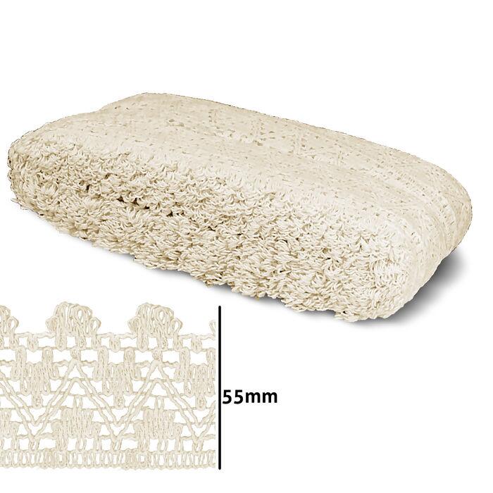 Renda de Algodão 6170/P marca São José 26 Crú, cada pacote contém cerca de 30 metros de renda com largura 55mm. A Renda São José 6170/P sendo feita de algodão com poliamida é perfeita para confecção e acabamento de roupa e acessórios como bolsas, carteiras, fantasias, cortinas, cangas, tapete, almofadas e artesanato em geral.