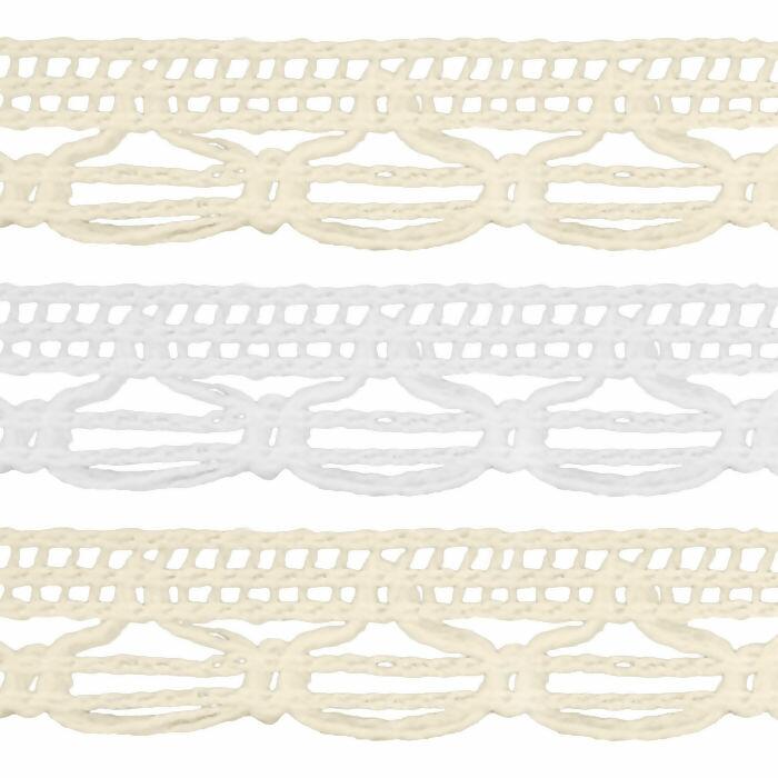 Renda Floripa FB B885 é fabricada com o melhor algodão, tendo diversos usos como enxovais de crianças, cama, mesa e banho, roupas, peças íntimas femininas e muito mais. Disponível nas cores cru e branco, venda em pacote com 10 metros. Produto de qualidade.