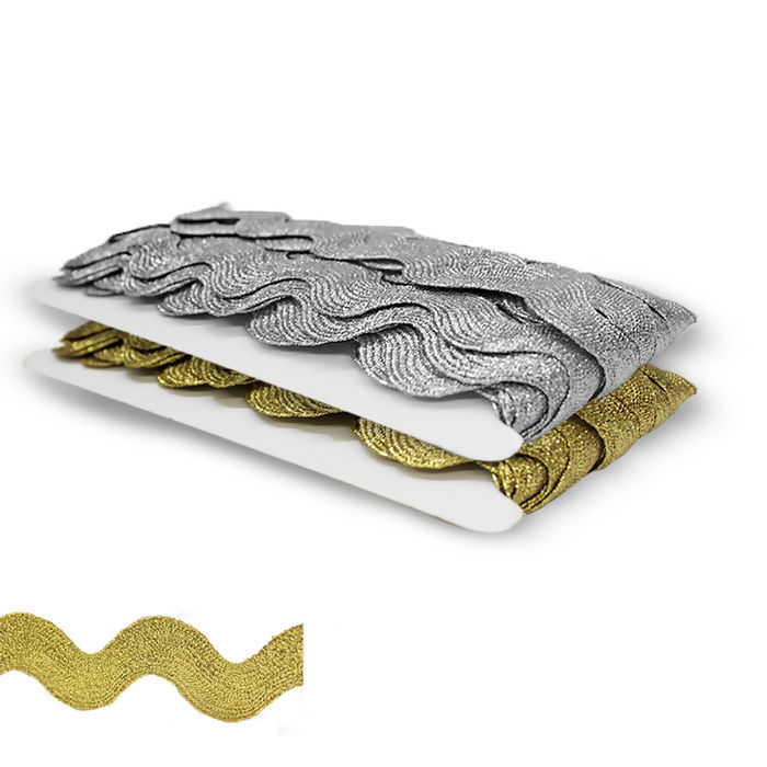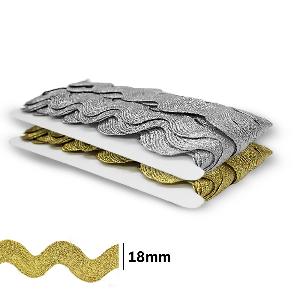 Sianinha Metalizada 18mm 18 marca NYBC, cada rolo possui cerca de 20 metros. A Sianinha Metalizada NYBC é o produto ideal para dar acabamento em roupas, pano de prato, pano de copa, toalhas e artesanato em geral!
