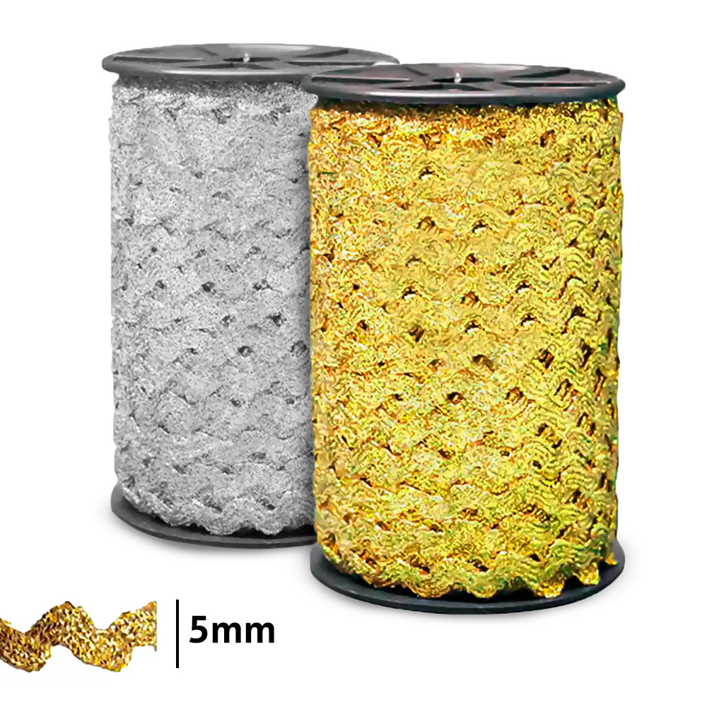 Sianinha Metalizada 5mm 222/04 marca São José, cada rolo possui cerca de 50 metros. A Sianinha de Metal São José é o produto ideal para dar acabamento em roupas, pano de prato, pano de copa, toalhas e artesanato em geral!