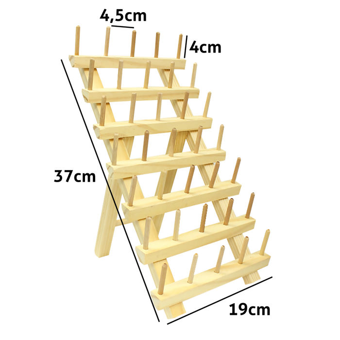 Porta Cone Para 35 Cones, feito de Madeira, tem um tamanho de 19,5cmx37cm. Usado para organizar suas linha O Porta fio de Costura é Resistente e Adequado para uso profissional e pessoal