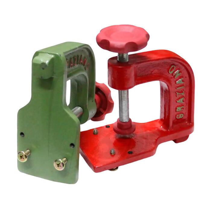 Suporte para Balancim de botão tipo prensa manual marca Graziano. Sendo robusto e prático, esse suporte permite você colocar sua prensa em qualquer lugar sem necessitar de furação!