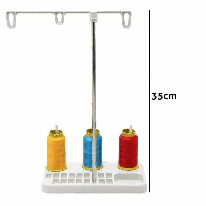 Este suporte para linhas, fios e bobinas doméstico com 3 suportes para cones é perfeito para manter suas linhas sempre prontas para uso, sem emaranhados e com total fluidez na hora da costura, e contém 15 divisórias para bobinas, 1 Espaço para múltiplos alfinetes e 1 suporte para até 3 linhas. O produto montado possui 35,5cm de altura e o espaço para alfinetes possui 6cmx5cm, sendo leve, fácil de montar e super portátil, é ideal para quem quer um canto de costura funcional e organizado!