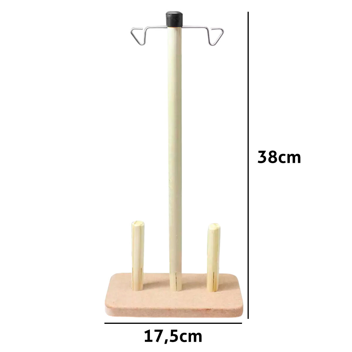Este organizador de fios e linhas para máquina doméstica com 2 cones é perfeito para manter suas linhas sempre prontas para uso, sem emaranhados e com total fluidez na hora da costura. O produto montado possui 38cm de altura e o suporte para cones possui 10cm, sendo leve, fácil de montar e super portátil, é ideal para quem quer um canto de costura funcional e organizado!