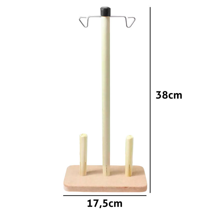 Suporte da linha possui 38cm Suporte dos cones possui 10 cm O fio desenrola com facilidade Montagem simples e prática, é leve e fácil de transportar