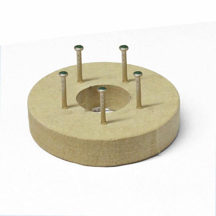 Tear circular feito de madeira composto de uma série de pregos. O Tear de Pregos Circular com 7 e 10 pregos é indicado para confecção de peças como toucas enquanto o de 4 pregos é ideal para utilizar a técnica rabo de rato.
