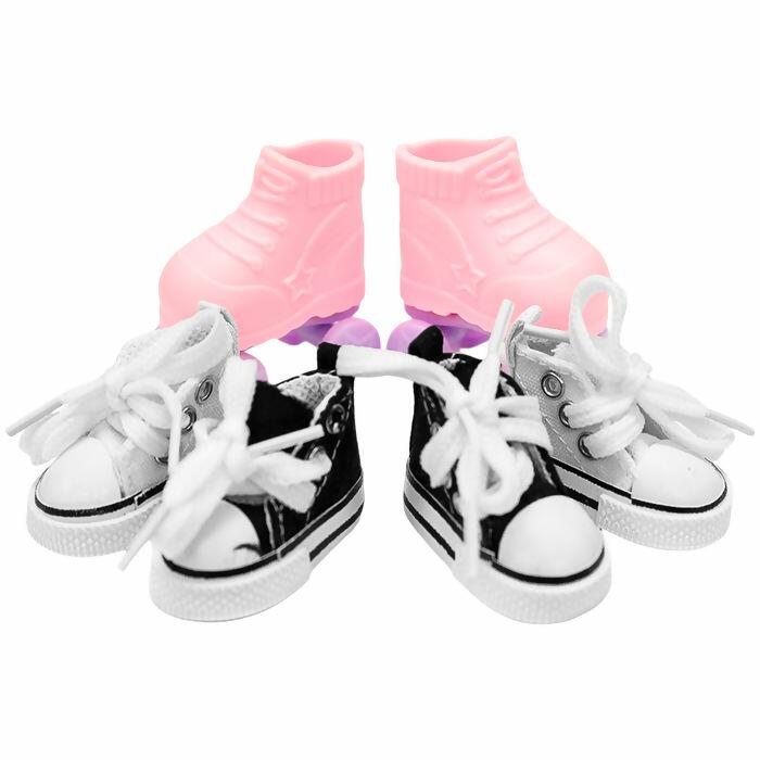 Os Calçados para Amigurumi trazem um toque especial aos seus bonecos, oferecendo três modelos encantadores: dois tênis de cano alto inspirados na moda de rua e um par de patins rosa super fofo com rodinhas removíveis. Com tamanhos de 3,2cmx5cm para os tênis e 5cmx5,5cm para os patins, esses calçados feitos de plástico e tecido são perfeitos para dar mais estilo e personalidade aos seus amigurumis, permitindo que eles explorem mundos imaginários com charme e autenticidade.