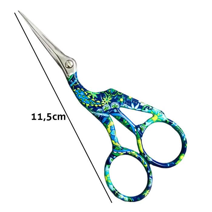 Formato de pássaro com estampa decorativa, charmosa e funcional Indicada para cortes de precisão em linhas e pequenos detalhes Lâminas afiadas que garantem corte limpo e sem esforço Ideal para uso em artesanato, costura e projetos manuais