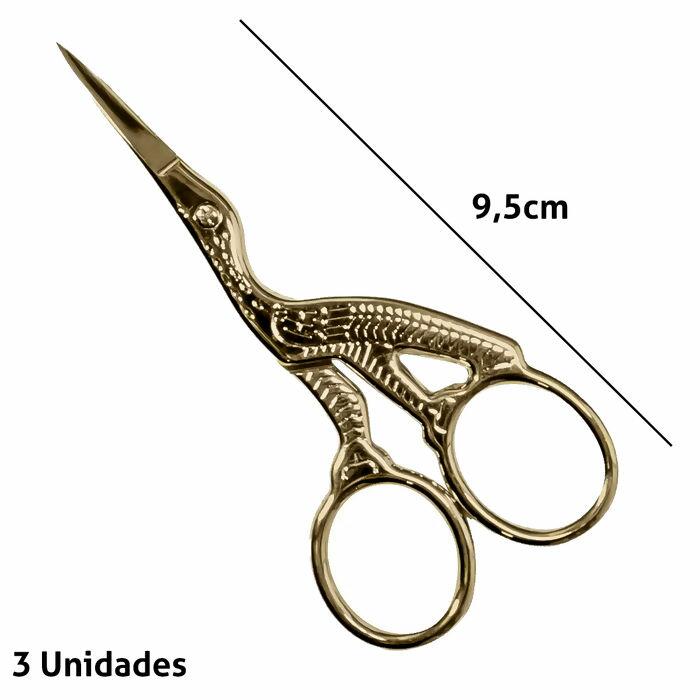 Composição: Aço inoxidável 3 unidades de tesoura Tamanho: 4,5 cm x 9,5 cm Design em formato de pássaro dourado