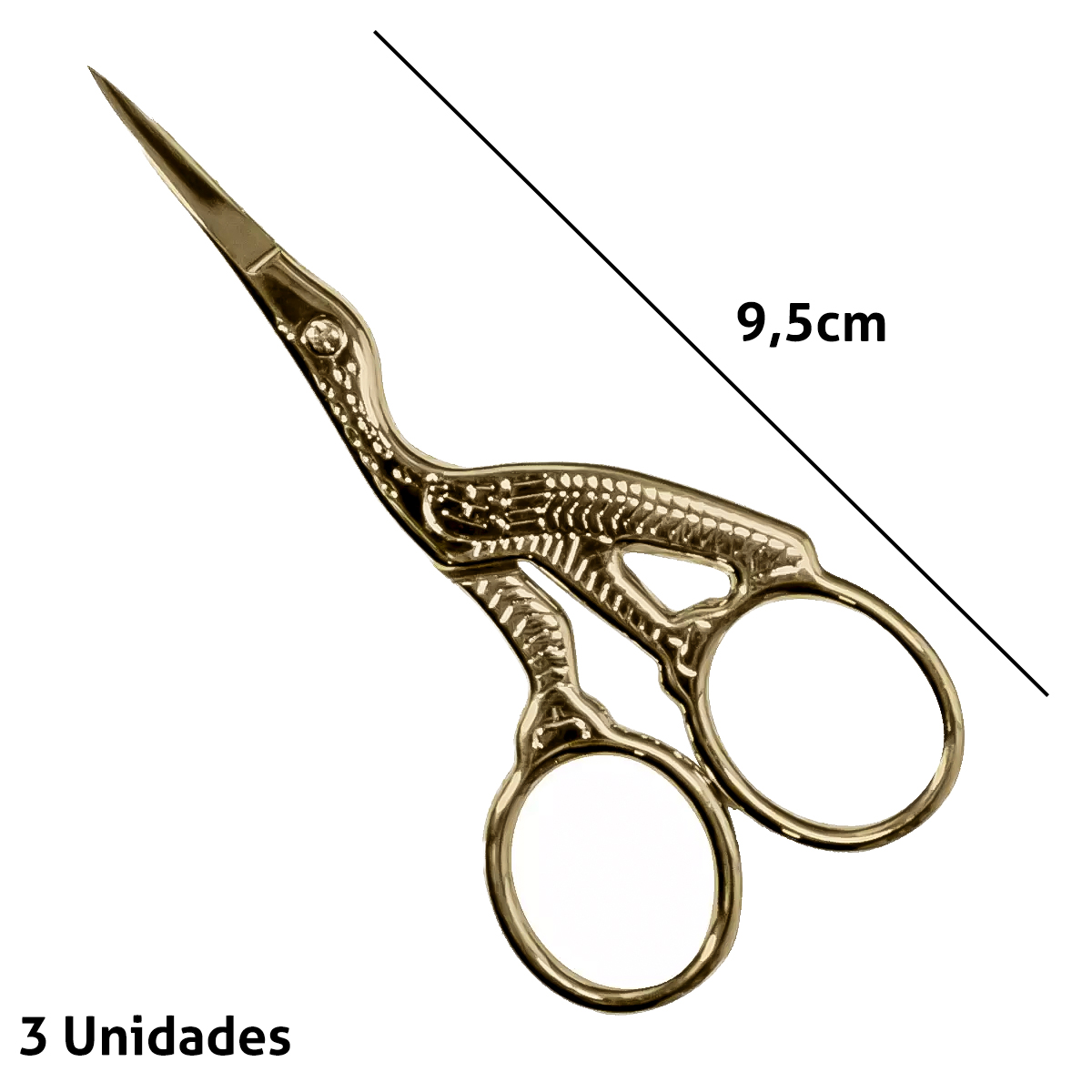 Composição: Aço inoxidável 3 unidades de tesoura Tamanho: 4,5 cm x 9,5 cm Design em formato de pássaro dourado