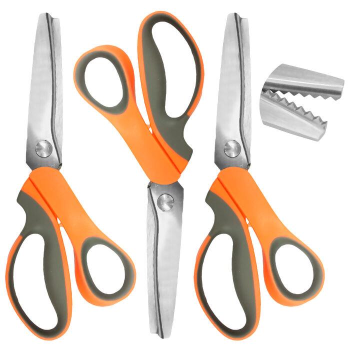 Lâminas de aço afiado e cabo emborrachado Quantidade 3 tesouras Tesoura de 23cm (9") com corte de 5mm ideal para decorar e picotar papel, tecido e outros materiais