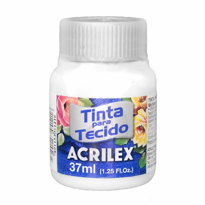 Tinta Clareadora Acrilex Para Tecido Fosca Ref.4140 em pote com 37mL. A Tinta Fosca de tecido Acrilex é ideal para aplicação em tecidos de algodão, sendo super resistente à lavagens, alto rendimento, fixação a frio já estando pronta para uso!