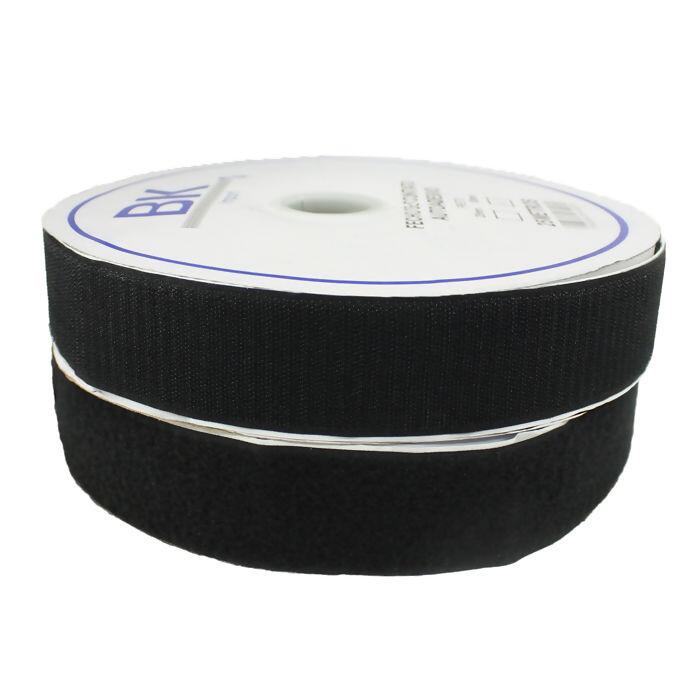Cor Preto 50mm de largura x 25m de comprimento Feito por 30% Nylon e 70% Poliéster Fixação forte com adesivo no verso Abre e fecha várias vezes Útil para artesanato, vestuários, fixação e veículos