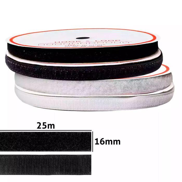 Velcro para costura na cor preto ou branco possui várias utilidades. Usado em peças de vestuário e em peças artesanais, de crochê, tricô e patchwork, na organização dos brinquedos em sua casa, para organizar ferramentas e maquiagens. Com 16mm de largura e 25 metros de comprimento, feito com 30% Nylon e 70% Poliéster