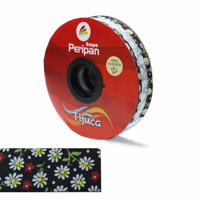 Viés Destaque 9800 marca Peripan com estampa de margaridas feito 100% de algodão com 35mm de largura aberto e 20 metros de comprimento. Estando disponível em diversas cores, o viés Destaque Algodão pode ser utilizado em acabamentos, artesanato, costura e muito mais!