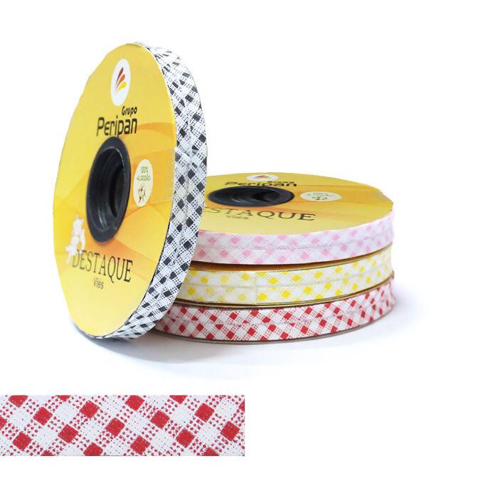 Viés Destaque 9200 marca Peripan com estampa xadrez feito 100% de algodão com 35mm de largura aberto e 20 metros de comprimento. Estando disponível em diversas cores, o viés Destaque Algodão pode ser utilizado em acabamentos, artesanato, costura e muito mais!