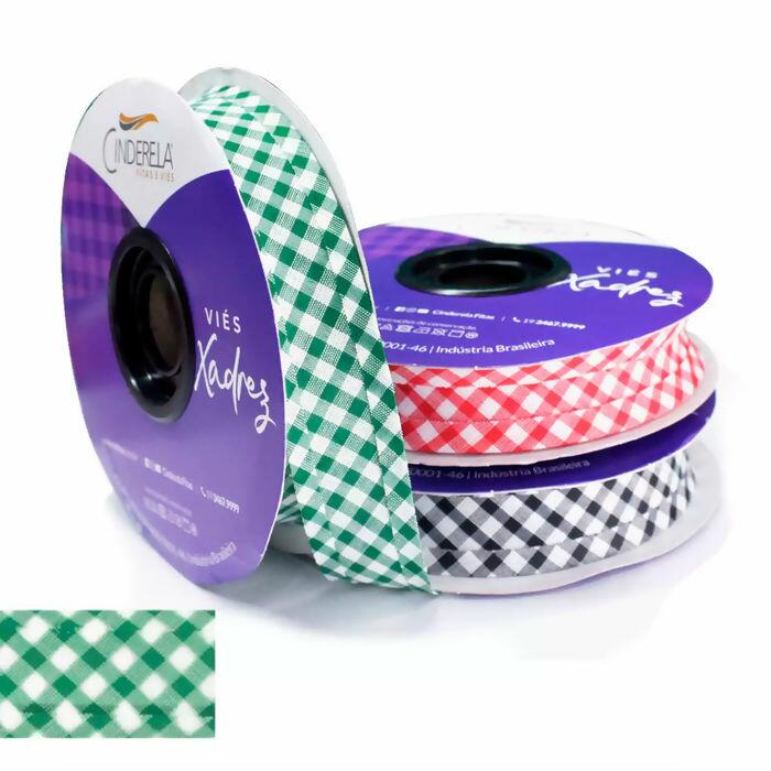 Viés com estampa xadrez grande em cores lisas marca Cinderela feito de uma mistura de algodão e poliéster com 25mm de largura fechado e 20 metros de comprimento. Estando disponível em diversas cores, o viés Cinderela Liso pode ser utilizado em acabamentos, artesanato, costura e muito mais!