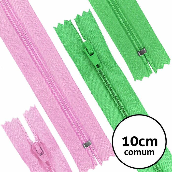Zíper comum colorido, pacote contendo 10 unidades de zíper com aproximadamente 10 centímetros de comprimento. O Zíper Comum é indicado para diversas confecções como por exemplo mochilas, bolsas e roupas em geral, principalmente blusas. Disponível em diversas cores.