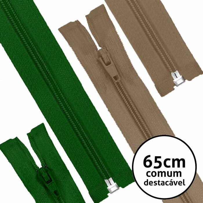 Zíper comum colorido com ponta destacável, pacote contendo 10 unidades de zíper com aproximadamente 65 centímetros de comprimento. O Zíper Comum é indicado para diversas confecções, sendo essa versão destacável indicada para blusa. Disponível em diversas cores.